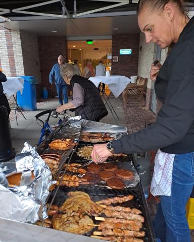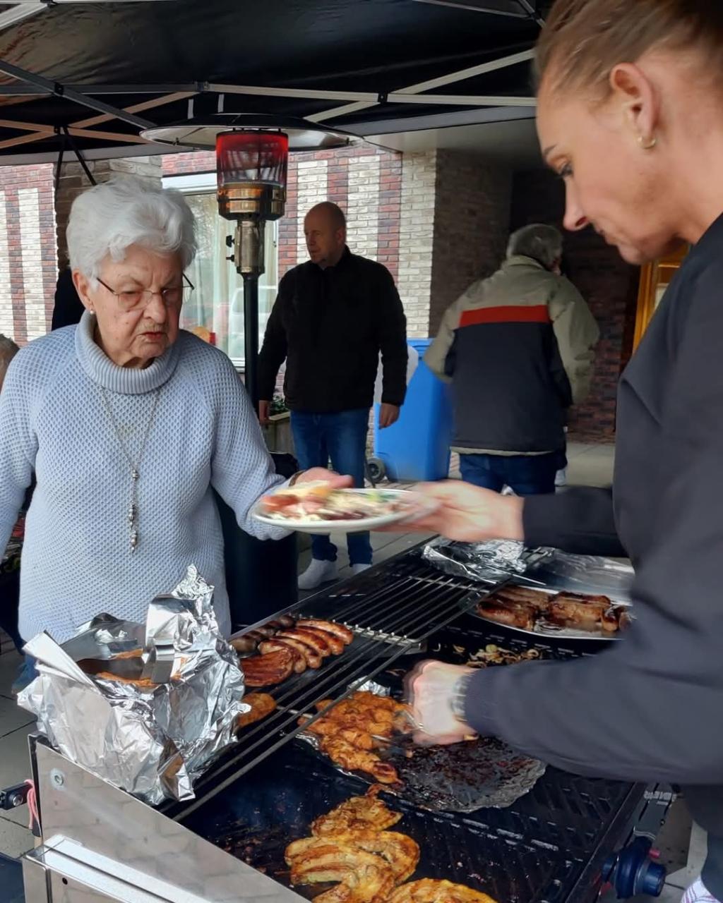 De bewoners die zelfstandig konden lopen om zelf hun eten te gaan halen kwamen langzaam in beweging en voor de bewoners die die dat zelf niet konden waren er voldoende vrijwilligers en personeel om te realiseren dat deze bewoners werden voorzien van het lekkere gebakken vlees met daarbij verschillende salades en sausjes.