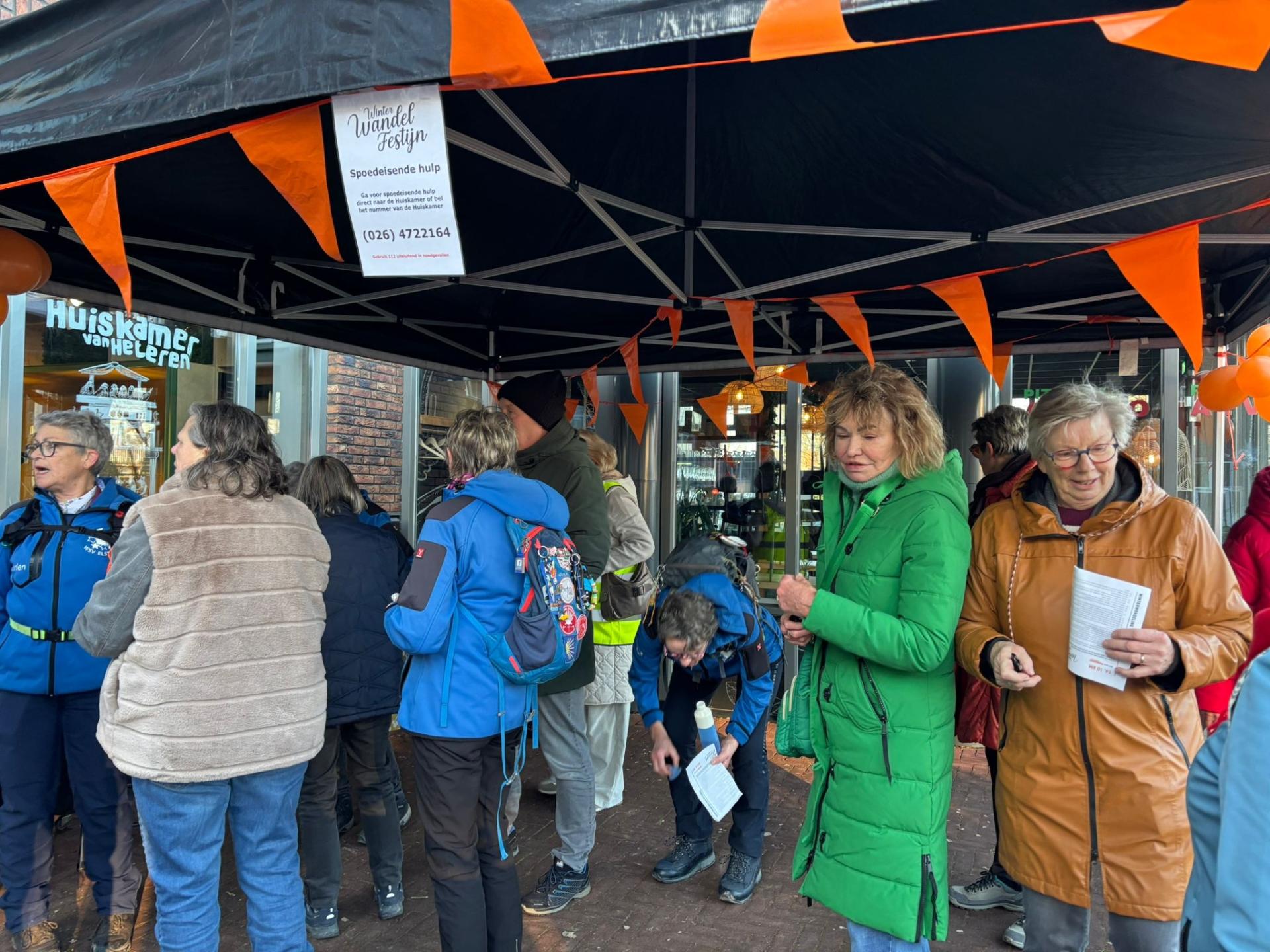Op 24 januari j.l. vond voor de derde keer de wandeling van het Winter Wandel Festijn in Heteren plaats. De ruim honderd deelnemers verzamelden zich op het plein van het Kwadrant in Heteren. Om half twee gingen ze, met de wandelroute op zak, op weg voor de ruim 5 of 10 km. Het weer werkte gelukkig mee, er waaide een frisse wind en het was rode wangen weer zoals je in de winter mag verwachten. Een kleine groep deelnemers besloot tot de 2,5 km en ook zij gingen gewapend met een routekaart op stap. Zij waren de eersten die zich weer meldden in de Huiskamer van Heteren waar zij een warme consumptie, een stuk fruit en een klein aandenken aan de wandeling ontvingen. Onder de Rijnbrug, naast het monument, werd aan de lopers van de 5 en 10 km een stuk fruit uitgereikt en vervolgende zij hun route. Op Camping de Uylenburg en landgoed Overbetuwe werden de wandelaars ontvangen door de medewerkers van de kinderboerderij en de vlindertuin en in de kantine van de camping stond een dampende kop tomatensoep en een warme of koude verfrissingen klaar, ook konden de wandelaars nog gebruik maken van de sanitaire voorzieningen aldaar. Die warme consumptie was welkom want het was snijdend koud onderweg. De weg vervolgen via de boomkwekerij was een uitdaging, enkele dagen voor het plaatsvinden van de wandeling werd daar hard gewerkt en werd de doorgang bemoeilijkt door de modder die op de weg lag. Desalniettemin namen de wandelaren deze hindernis en kwamen ze via de Achterstraat Heteren weer binnen. Voor de 5 km lopers ging de route via de Flessenstraat weer richting het Kwadrant, de 10 km lopers zijn via de Boterhoeksestraat en de Steenovenlaan nog door de Hetersche Waarden gelopen alvorens ze terugkwamen in het dorp. Bij de finish voor de Huiskamer van Heteren ontving iedere deelnemer een klein aandenken aan de derde keer dat er vanuit het Hart van Heteren gewandeld werd. De Huiskamer van Heteren was speciaal voor ons langer geopend die middag en menig wandelaar ging zich daarom binnen nog even opwarmen. Leuk waren de vele enthousiaste reacties en we gaan zeker ons best doen om voor de vierde Winter Wandeling weer een mooie route samen te stellen. Dank aan de medewerkers van de Huiskamer van Heteren, de Jumbo en de EHBO medewerkers en de medewerking van de vrijwilligers op de camping, je hebt elkaar nodig om iets moois voor elkaar te krijgen. Tot 23 januari 2027 voor de volgende editie van het Winter Wandel Festijn