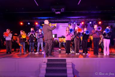 Daarnaast was er een bijzondere samenwerking met leerlingen van de St. Jacobusschool uit Valburg. Zij volgden in de weken voorafgaand aan ons concert muzieklessen bij onze dirigent Harald Franken in het kader van het project “Doe Maar Mee Band”. Op deze zondagmiddag hebben wij gezamenlijk de nummers Jaws en Thriller uitgevoerd én de leerlingen hebben zonder ons nog een James Bond nummer op hun trombones laten horen. Het was een daverend succes!