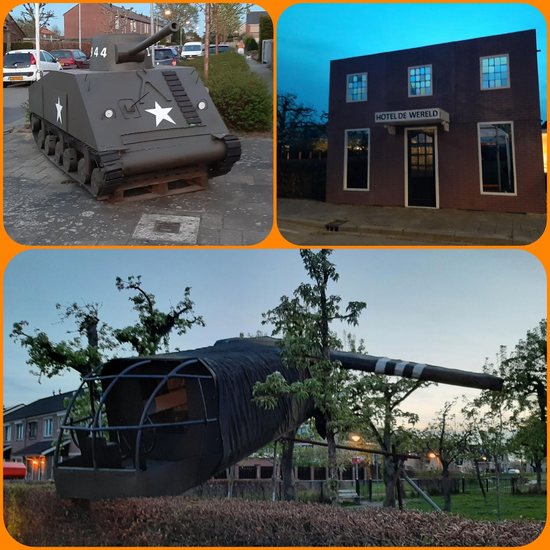 We zijn er van af begin 2020 mee bezig geweest om het te bedenken de materialen te verzamelen en het bouwen. Door de corona heeft het lange tijd stil gelegen maar uiteindelijk is er toch een feest van gekomen. Vanuit het Hotel de Wereld is de doden herdenking vertrokken met een afgevaardigde van het gemeente bestuur en ook de bevrijdingsdag is hier gevierd. De vrede is getekend door de 3 hoofd personen die met een jeep zijn voor gereden. Als dank hebben we alle helpers een BBQ aangeboden en enkele mensen in het zonnetje gezet. Het was een geslaagde evenement voor onze straat en voor heel het dorp, we hebben nog de krant gehaald.