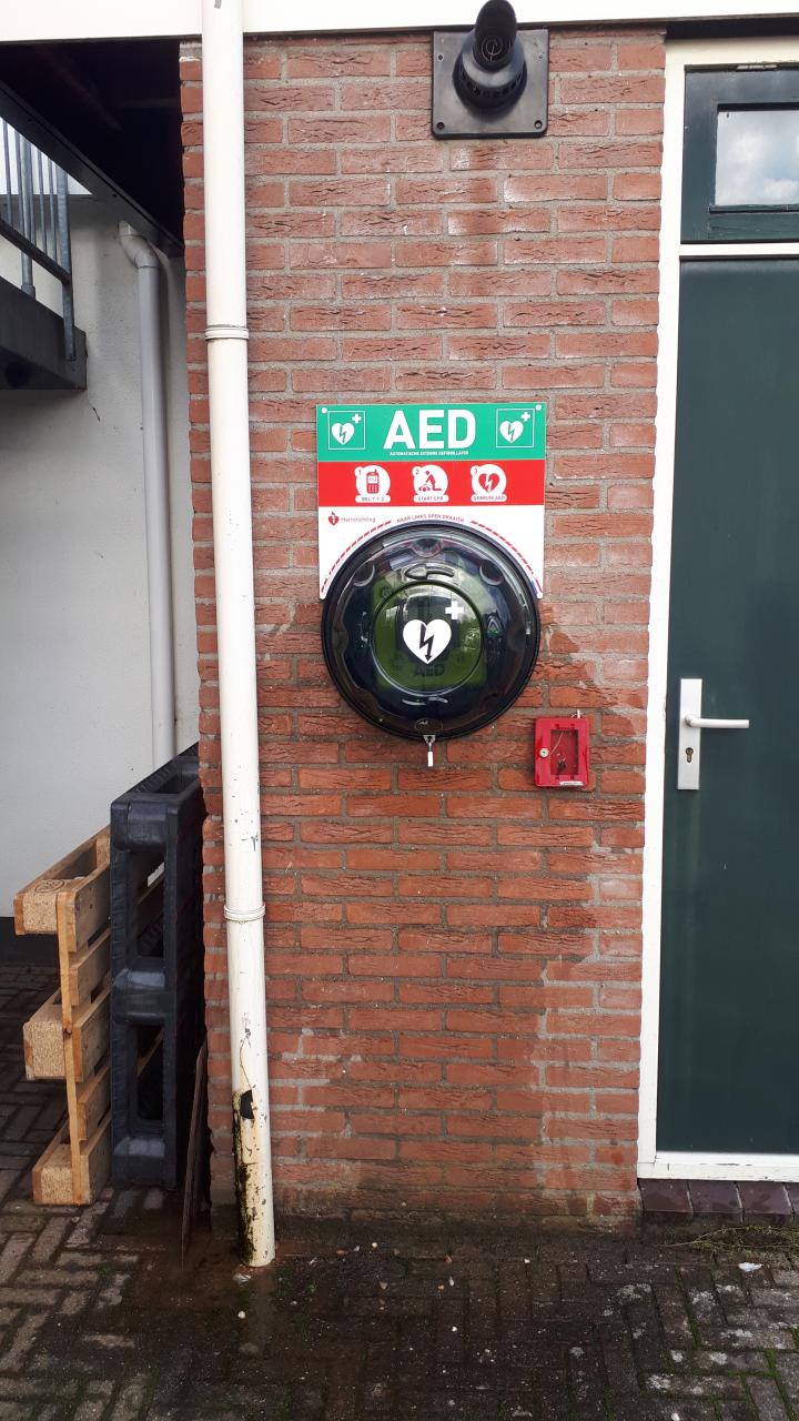 Onlangs hebben we dit initiatief financieel afgerond. Nu zijn we al weer een stapje verder; het back-board hangt er! Zoals op de foto te zien is valt de AED veel beter op. Tevens staat op het bord de nodige informatie hoe te handelen indien de AED gebruikt moet worden.