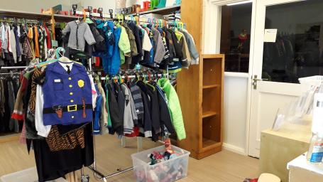 Dankzij de vele donaties van spullen, aangevuld met het bij elkaar gespaarde bedrag van Overbetuwe Doet, hebben we de ruimte prachtig kunnen inrichten. Er is een hoek voor jongenskleding, meisjeskleding, een schoenenhoekje en nu ook dames- en herenkleding. Vele vrijwilligers hebben de handen uit de mouwen gestoken en geholpen met spullen ophalen, klussen, kleding sorteren en inrichten.
