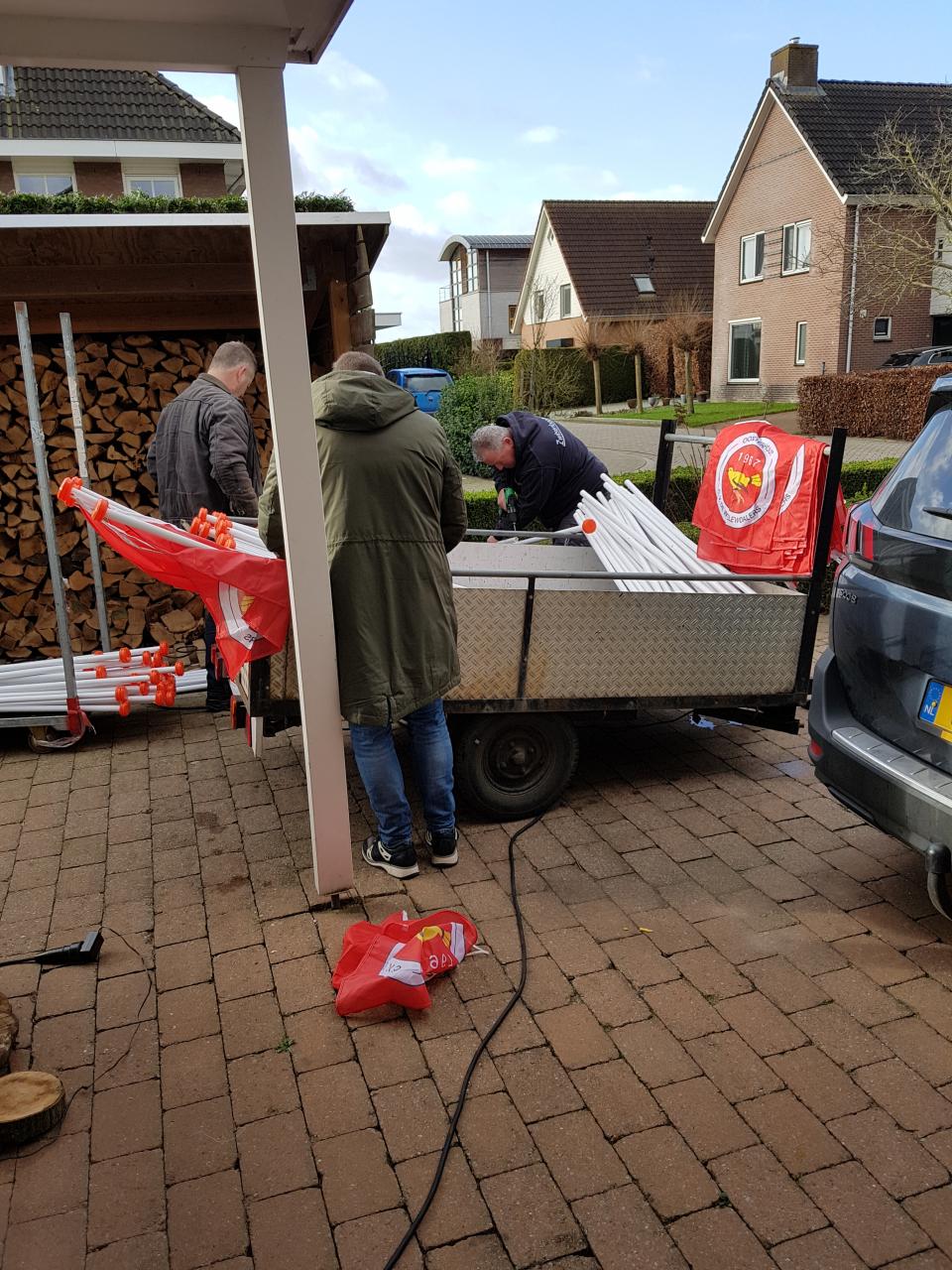 Via social media hebben wij mensen opgeroepen om hun waardecheques aan ons initiatief te doneren. Daar is veel gehoor aan gegeven en zo konden wij afgelopen maand het initiatief uitvoeren. Er bleken na een ronde door het dorp meer vlaggenhouders te hangen dan wij in eerste instantie dachten, deze zijn er door de gemeente voor blauwe dinsdag bijgeplaatst. Daardoor hebben wij ook meer vlaggen besteld en in overleg met de mensen achter Overbetuwe doet ons budget iets opgehoogd met een bedrag wat we nog in ons account hadden staan. De prijzen waren gestegen sinds wij ruim een jaar eerder met het initiatief gestart waren, dus was het niet meer te realiseren voor het budget wat we in eerste instantie hadden. In samenwerking met de gemeente hebben we tip gekregen over het formaat vlaggen en stokken en zo alles goed kunnen realiseren. Eind februari was het dan zover, met een groepje raadsleden hebben we alle vlaggen aan de stokken gemaakt en Oosterhout volgehangen. Het was een zeer feestelijk gezicht en we hebben veel leuke reacties mogen ontvangen.