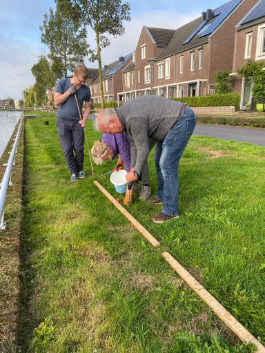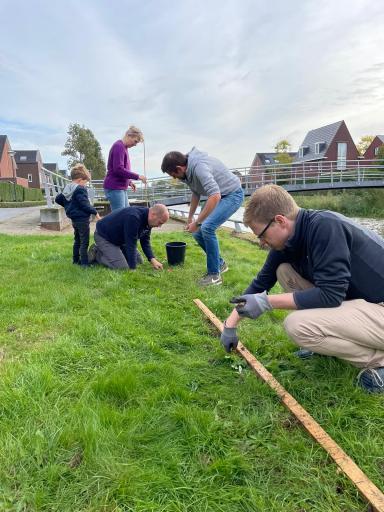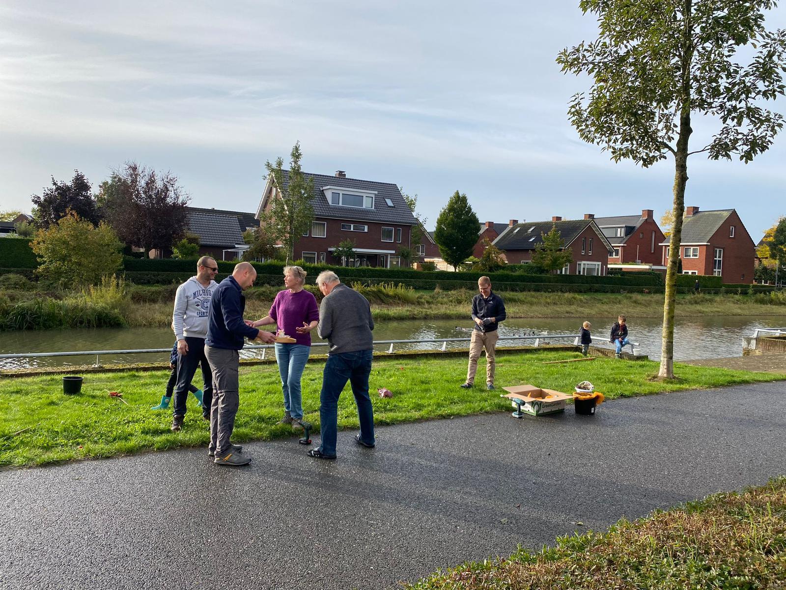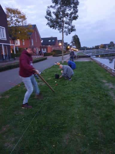 Tijdens het planten van het tweede deel hebben we weer veel lol gehad. Inmiddels zijn er wat nieuwe bewoners bijgekomen en tijdens het planten, hebben we kennis kunnen maken. Het was leuk om elkaar te ontmoeten en/of bij te kletsen. Onder het genot van een hapje en drankje na het planten van steeds een paar rijen (en tijdens😉) hebben we de klus in een paar uurtjes op een paar avondjes geklaard. Vele gezellige handen maken licht en kleurrijk werk!