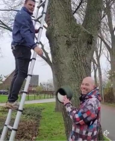 Valburg Groen heeft via Overbetuwe Doet vogelhuisjes bij elkaar gespaard. De lagere school is zelf aan de slag gegaan om huisjes te bouwen. Er zijn een drietal mannen (onze Helpende Handen) bezig geweest om ze op te hangen in Valburg.