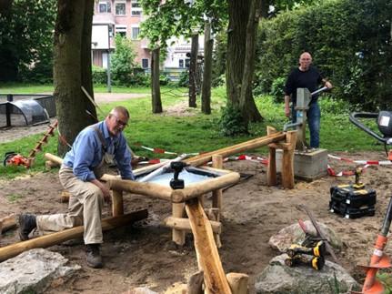 De realisatie bleek een grotere klus dan we vooraf hadden ingeschat. Vooral in het bouwen van de watertafel door enkele handige buurtbewoners ging veel tijd zitten.