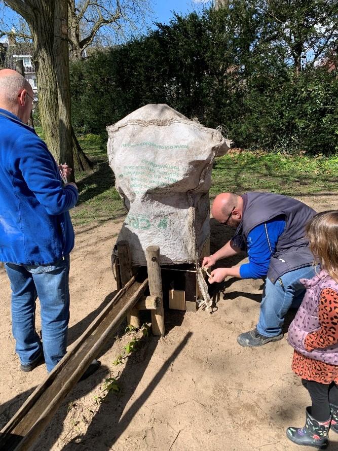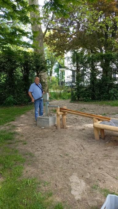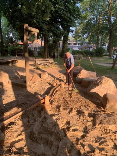 Afronding met de aanleg van de pompvlonder, het neerleggen van 3 zwerfkeien en het aanvoeren van 6 m3 zand. Ook dit wordt uitgevoerd door de speelweidecommissie aangevuld met enkele vrijwilligers uit het vaste bestand,