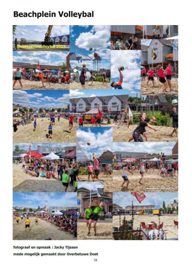 In uitgave september van Dorpskrant Herveld-Andelst hebben we de eerste twee pagina's A4 kunnen plaatsen vanuit de bijdragen voor ‘Overbetuwe Doet’ oktober 2022. Het jaarlijks massaal bezochte Beachplein Volleybal op 1 en 2 juli kwamen in kleurenfoto’s goed tot hun recht. De andere kleurenpagina bevatte foto’s van uit de voorstellingen ‘Ciske de Rat’, van 6 t/m 9 juli uitgevoerd in De Hoendrik.