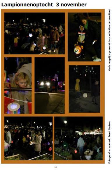 In de decemberuitgave van Dorpskrant Herveld-Andelst hebben we twee pagina's A4 kunnen plaatsen vanuit de bijdragen. Op pagina 20 plaatsten enkele we kleurenfoto's af van de zeer druk bezochte lampionnenoptocht op 3 november. Het leek net zo druk als tijdens de wandelvierdaagse rond Pinksteren.