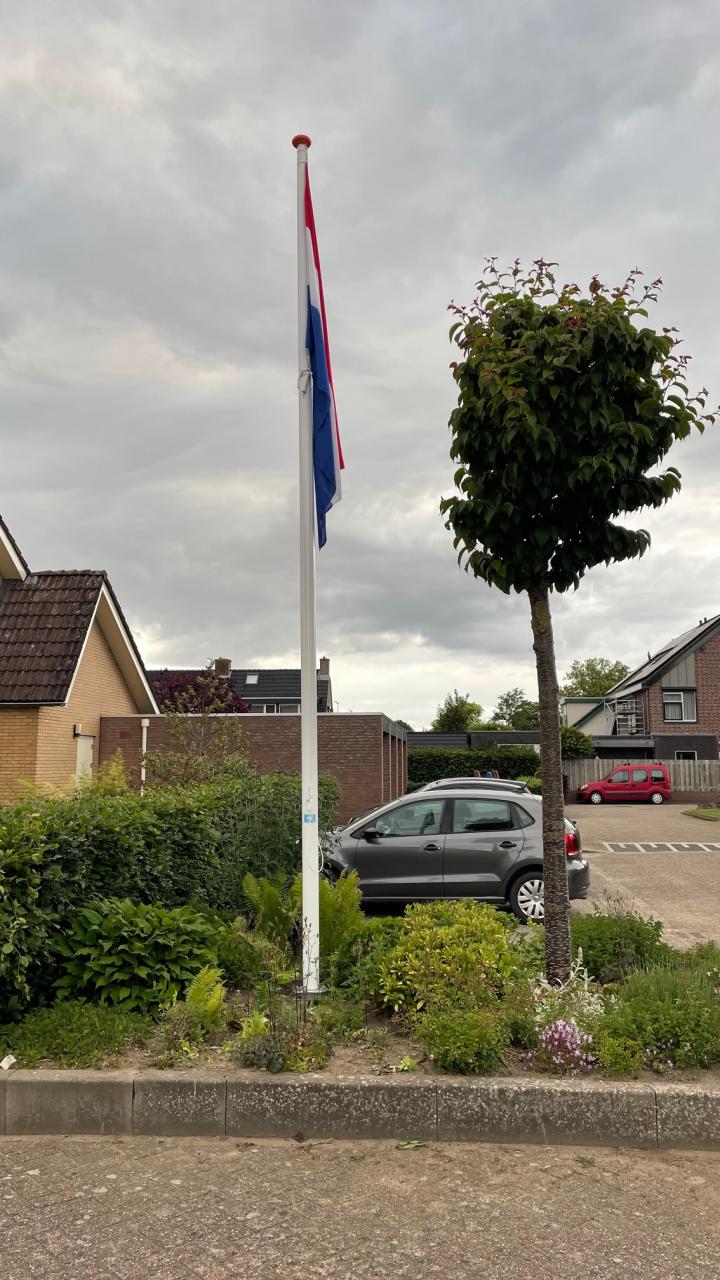 Met hulp van mede buurtbewoners van het Nassaupark voor het ophalen van de vlaggenmast met toebehoren, het boren van gaten in de betonnen voet van de vorige vlaggenmast en het plaatsen van het kantelanker en op maandag 26 mei plaatsten van de nieuwe vlaggenmast is dit project succesvol afgerond.