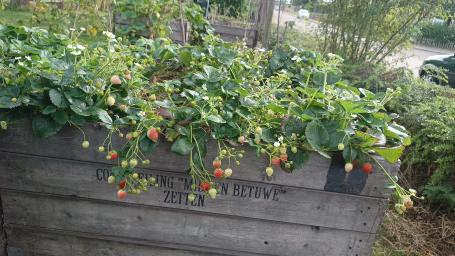 Deze zomer hebben we vooral kunnen genieten van de overheerlijke aardbeien die nu nog steeds volop vrucht dragen en het mooie perkje met zonnebloemen dat de hele zomer de buurt nog meer heeft opgevrolijkt.