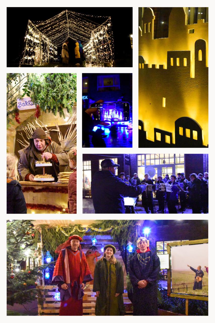 Na twee dagen opbouwen ondanks regen en storm, stonden dan toch alle bouwwerken. Zorgvuldig, enthousiast en creatief vormgegeven lichtjes. Groot of klein. Allemaal rondom het thema kerst. Dit jaar hebben de kinderen van de basisscholen en de peuterspeelzaal honderden engeltjes gemaakt die in een grote lichttunnel bij Liefkenshoek te bewonderen waren. Er was verder nog een grote engel, een kerststal, een gedenkplaats, een landschap en de primeur was er voor het dorpje Bethlehem. Het plein in het nieuwe Hart van Heteren was voldoende af om er ook echt gebruik van te kunnen maken en op het plein is een dorpje gebouwd. bijna alles van gekregen materialen. Twee avonden was het echt een bruisend hart. Een tollenaar, visser, de 3 wijzen, een kameel, de schenkers met chocomelk en gluhwein, de bakker en nog veel meer figuranten. Kinderen konden er verven en een diefstal oplossen. Met de juiste oplossing konden ze een echte schatkist open maken. Er waren koren en ook Concordia Driel heeft een prachtig optreden gegeven. Het was drukker dan we hadden verwacht en de enthousiaste reacties waren hartverwarmend. Vele handen maken licht(er) werk en het team vrijwilligers wat meehielp was dit jaar zeker verdubbeld. Na 5 dagen en honderden bezoekers zijn de lichtkunstwerken weer opgeruimd. Grote dank voor alle mensen die hebben geholpen om het mogelijk te maken door bij te dragen d.m.v. cheques, materialen, ruimte, tijd en energie.